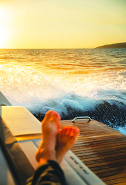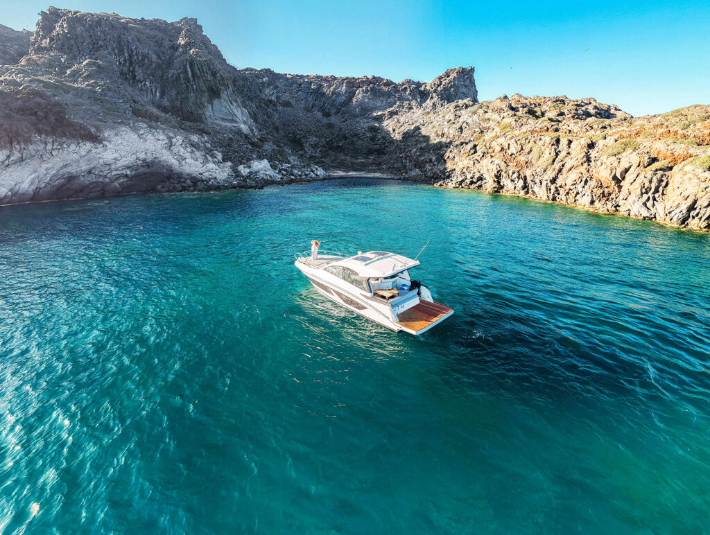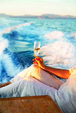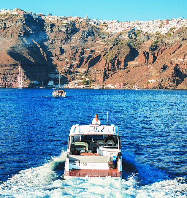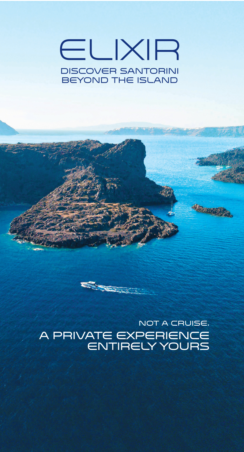 “The sea experience, the exquisite Aegean Sea views from the vessel, the absolut view of the unique scenery of the caldera-cliff the quintessential landmark of Santorini, the stunning views from sunrise to the renowned sunset of Santorini the very essence of its myth and the savouring notes of intimacy onboard, make your cruise unforgettable”